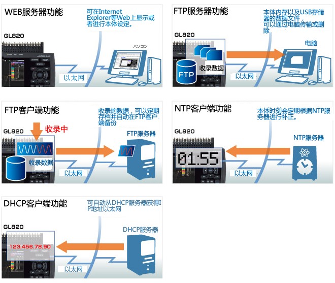 日本圖技GL820多通道存儲記錄儀具有多種網(wǎng)絡形式 可使用符合測定形態(tài)的網(wǎng)絡功能。
